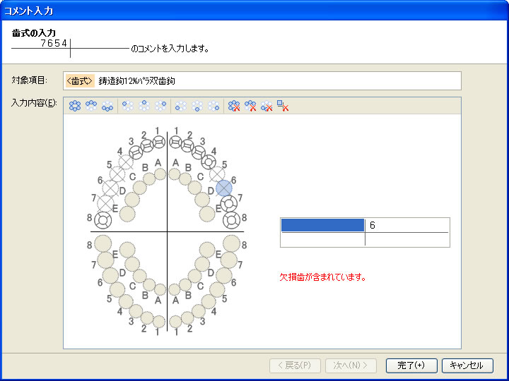 ※欠損歯を入力した場合、確認メッセージが表示します。