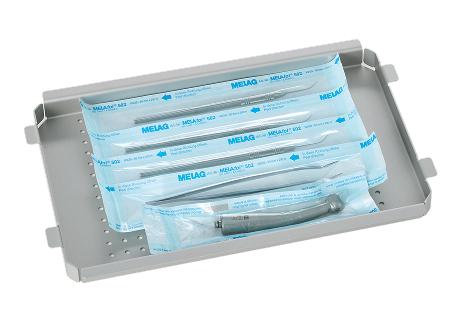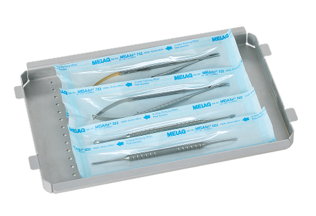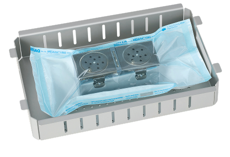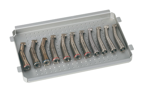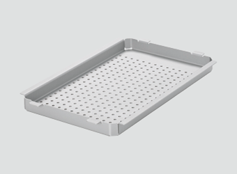 標準トレイは高さ20mm未満の器材を入れて滅菌可能です。厚さ20mmを超える器材はトレイ(深底)に入れて滅菌してください。
