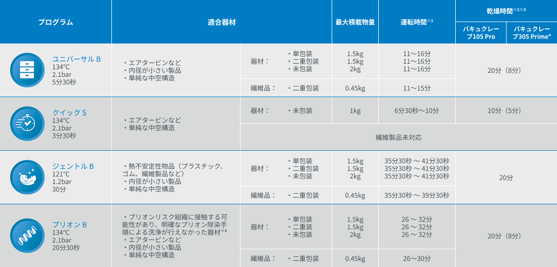 ※1 滅菌時間は積載する器材の量や滅菌バッグによる包装の有無、乾燥時間の設定、本体のメンテナンス状況、据付条件(供給電圧など)により変動します。