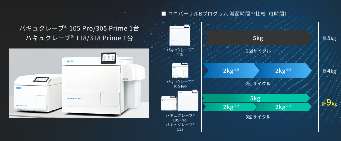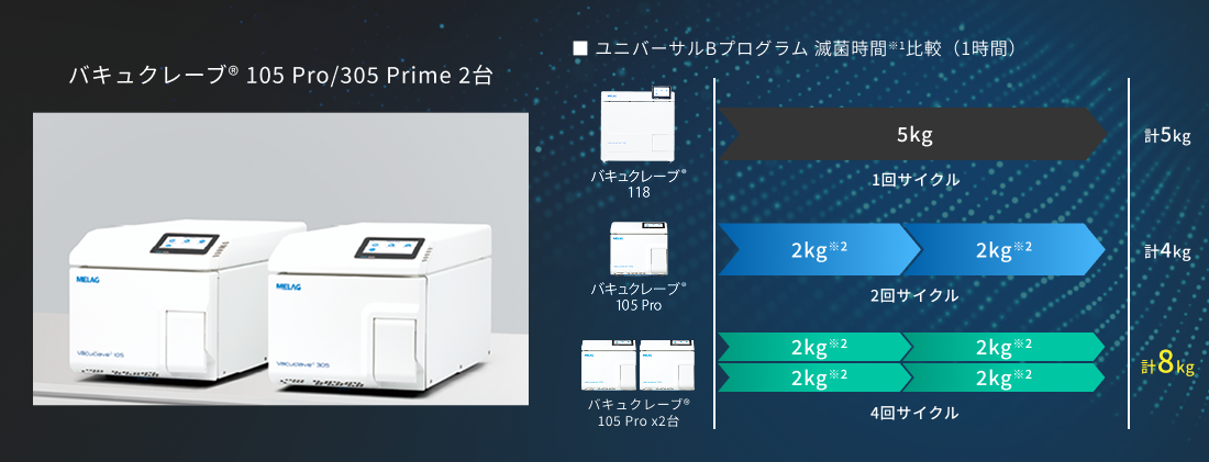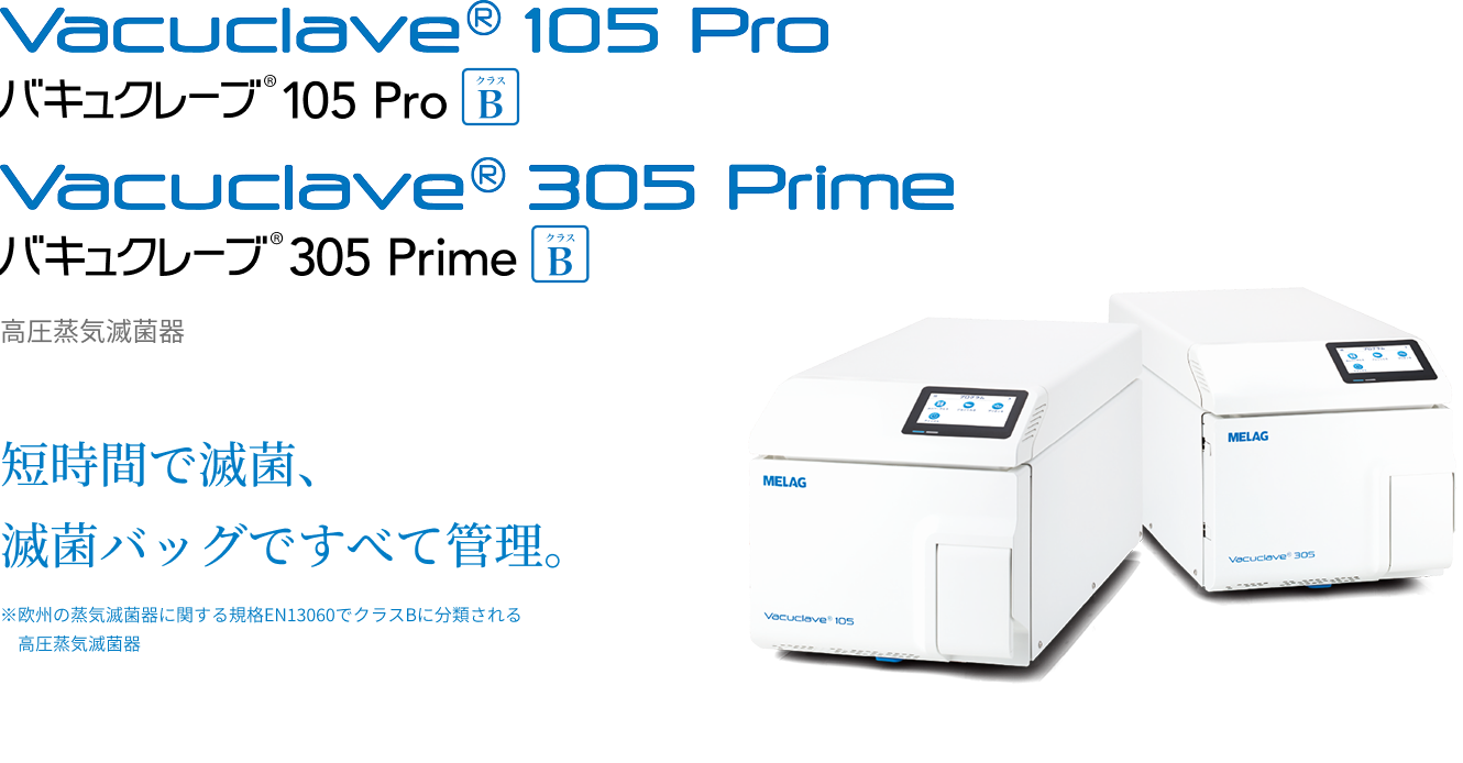 クラスBの高圧蒸気滅菌器でありながら、滅菌工程を短時間で完了する「バキュクレーブ® 105 Pro / 305 Prime」。