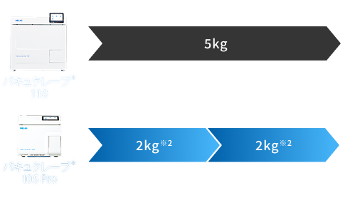 滅菌時間の短縮により、時間当たりの滅菌量はバキュクレーブ® 118 / 318 Primeと同程度を実現。高回転な滅菌サイクルで診療効率の向上に貢献します。